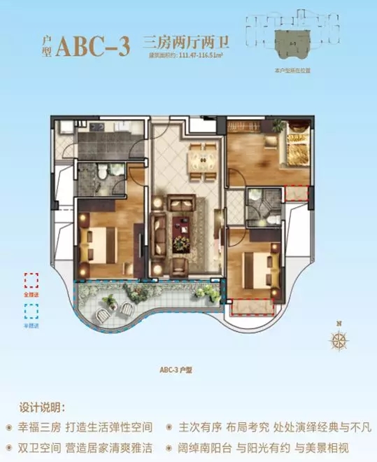 建面约116.51㎡三房两厅两卫